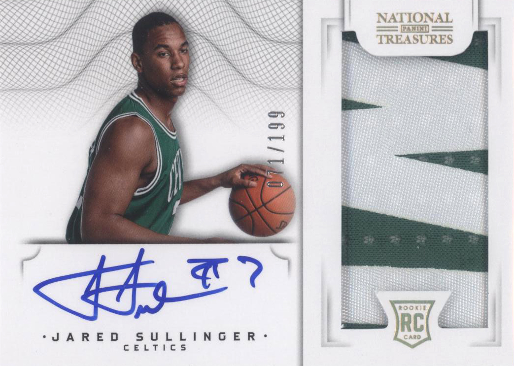 Jared Sullinger。BostonはPatchカードにはちょっとあわないですね。シンプルなデザインが魅力のユニフォームですが。このカードは名前のNの部分でしょうね。